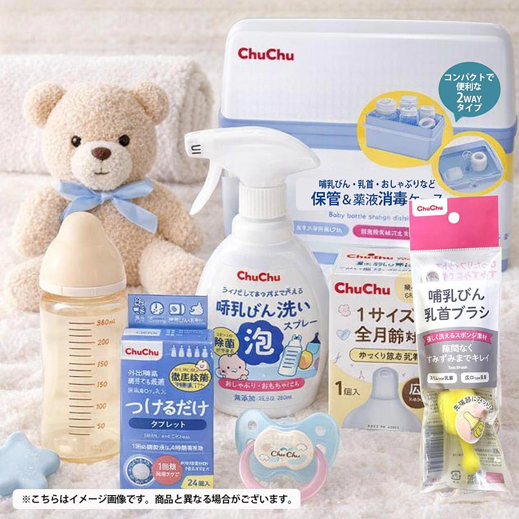 《セット内容詳細》 ・マルチフィット 広口タイプ プラスチック製哺乳びん 240mL×1個 ・つけるだけ タブレット 24錠 R×1個 ・哺乳びん乳首ブラシ×1個 ・ミルボックスミニ R1500×1個 ・チュチュ 哺乳びん洗い泡スプレー 本体 260mL×1本 ・マルチフィット 広口タイプ ゆっくり飲み乳首 1個入×1個 ・チュチュ おしゃぶり デンティスター N1 C ブルー×1個 ※各商品詳細は、各ページにてご確認お願いいたします。