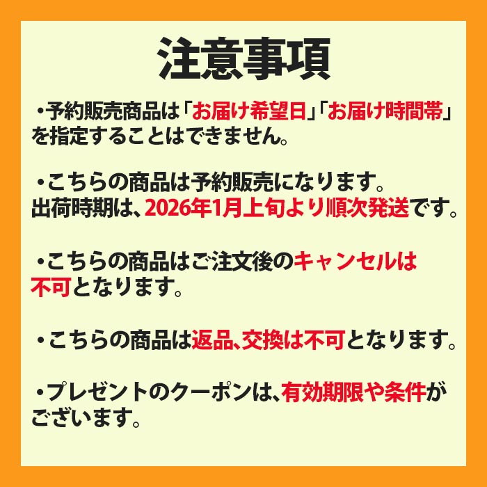 ※12月25日(木)午前10時以降のご入金確認済のご注文につきましては、1月5日(月)以降順次発送いたします。